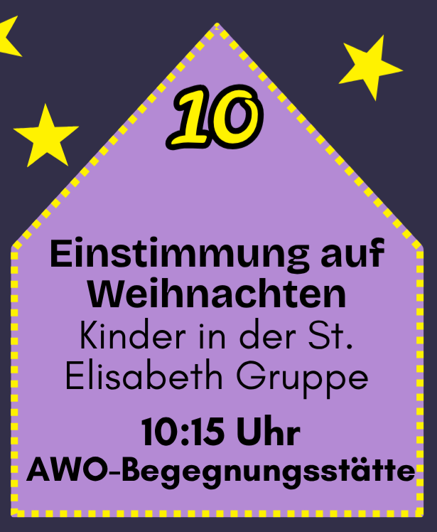 Wanne Süd leuchtet auf: Märchenwinterweihnachtswelt mit der AWO Herne Mittwoch, 3. Dezember 2025 14:00 Uhr AWO-Begegnungsstätte Im Sportpark 5, 44652 Herne Der AWO-Kreisverband Herne lädt im Rahmen der nachhaltigen Adventsaktion im Quartier „Wanne Süd leuchtet auf“ Erwachsene zu einer Märchenwinterweihnachtswelt am 03.12.25 von 14:00 bis 16:30 Uhr in die AWO-Begegnungsstätte Im Sportpark 5 in Wanne-Süd… Weiterlesen »Märchenwinterweihnachtswelt