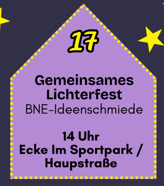 Eingang zum Sportpark Ecke Hauptstraße / Im Sportpark Hauptraße/ Im Sportpark, HerneAm 17. Dezember laden alle Akteure der BNE-Ideenschmiede um 14:00 Uhr zu einem gemeinsamen Lichterfest am Eingang des Sportparks Eickel ein. Am geschmückten Tannenbaum werden wir Adventslieder singen, Punsch trinken… Weiterlesen »Gemeinsames Lichterfest am Tannenbaum