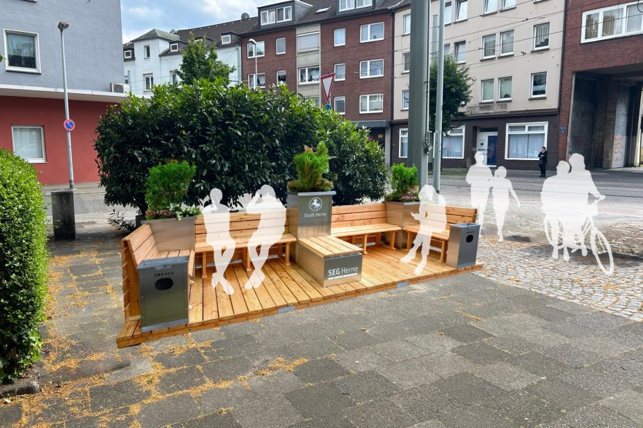 Die drei Herner Stadtterrassen bieten seit April neue Aufenthaltsmöglichkeiten im öffentlichen Raum, der sonst für Autos vorgesehen ist. Noch bis Ende September können Bürger*innen, Vereine und sonstige Institutionen dort Aktionen durchführen. Wie das Projekt bei den Menschen ankommt, möchte die Stadt Herne nun mit einer Onlineumfrage in Erfahrung bringen.