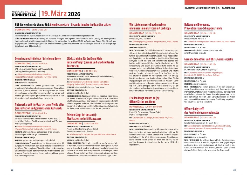 „Am Montag, 16. März 2026, startet die 38. Herner Gesundheitswoche. Unter dem Motto „Gesund beginnt im Miteinander!“ können alle Bürger*innen bis Sonntag, 22. März 2026, kostenlos an vielfältigen Angeboten rund um körperliche, seelische und soziale Gesundheit teilnehmen.