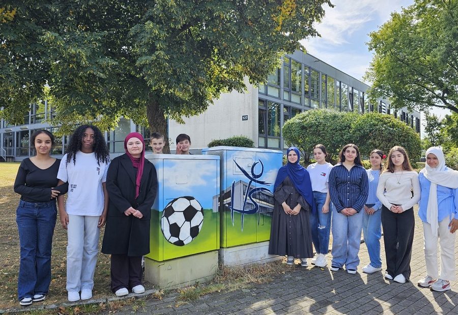 Mit organisatorischer Unterstützung durch Liridona Ahmetaj von der Stadtteilkoordination IFAK e.V. sowie durch die künstlerische Umsetzung des Grafikkünstlers Maurizio Bet haben die Schülerinnen und Schüler der Hans-Tilkowski-Schule mit ihrem Entwurf dazu beigetragen, dass der Stromkasten nun ein freundliches Bild abgibt.